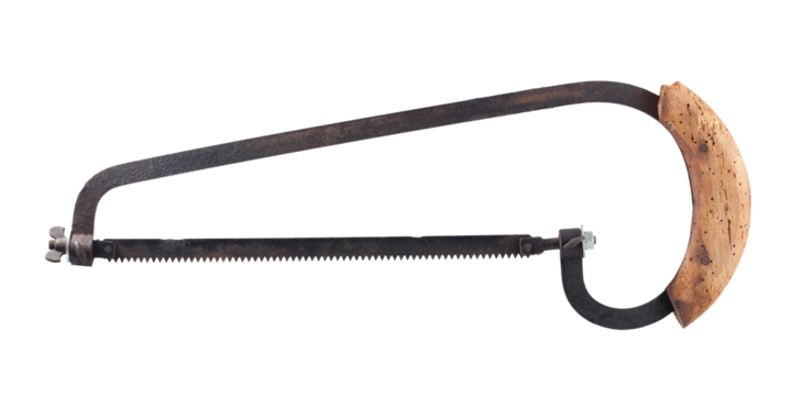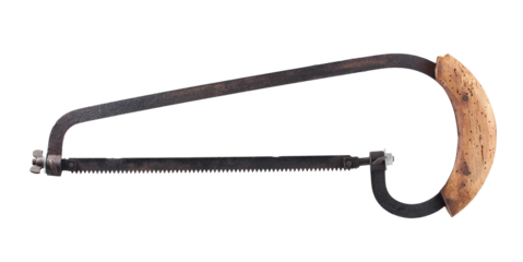 Coping saw with wooden handle isolated on transparent background is used for cutting curves in woodworking and metalworking projects