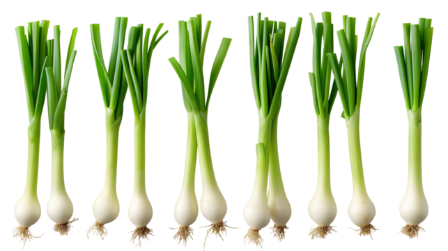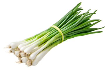 Fresh scallion vegetable ingredient for cooking and healthy eating food isolated on transparent background