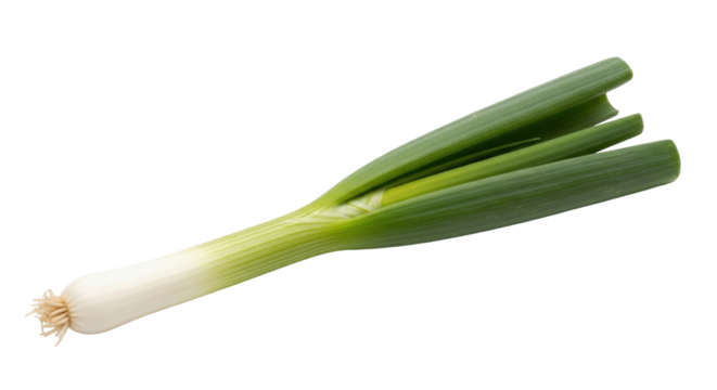 fresh green leeks isolated on transparent background.