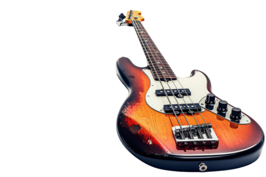 Close-up of a sleek, black acoustic guitar on a transparent background. highlighting its intricate curves and string details in high resolution.