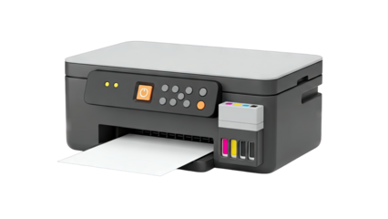 Modern Inkjet Printer Printing Paper on White Background