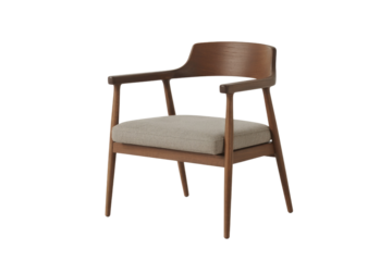 Elegant dark wood armchair featuring a curved backrest and light beige upholstered seat, ideal for contemporary interiors. background removed