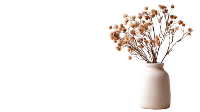 modern ceramic vase with dry flowers, isolated on white background png