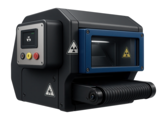 Cardboard Box on Conveyor Belt Under Blue Scanner Arch