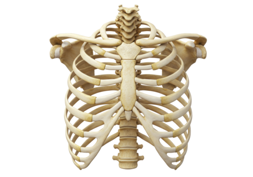 Human rib cage isolated on transparent background, skeletal anatomy of thorax with ribs, sternum, clavicle, and vertebrae for medical study