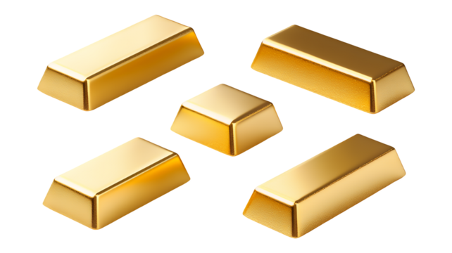 Stack of gold bars with clipping path, PNG collection, PNG image, PNG files, Generative art.