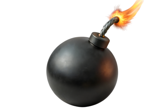 Vintage black bomb with lit fuse, symbolizing explosive threat against neutral backdrop