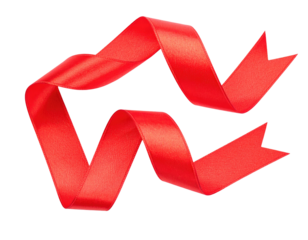 A vibrant, flowing scarlet ribbon, gracefully curved and isolated on a black background