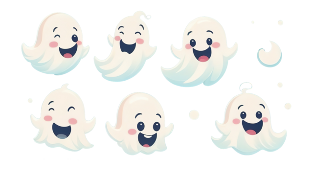 Set of cute ghost sheet cartoons for logos, transparent background.