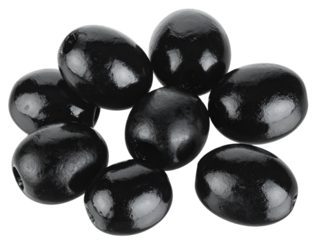 Scattered Black Olives with Loose Leaves, Top-Down Layout, isolated on transparent background png