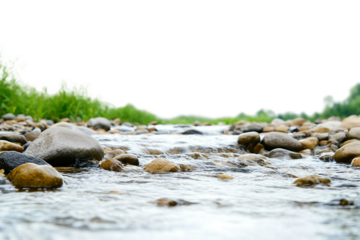 Scenic river landscape with turquoise water and rocky shores on transparent background