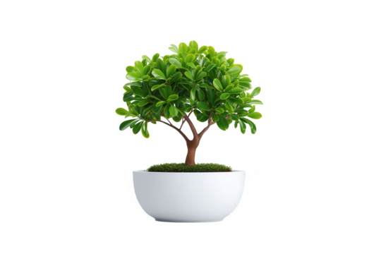Small potted schefflera arboricola plant in white pot isolated on transparent background