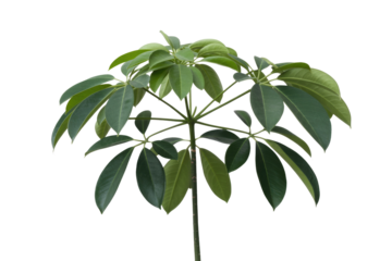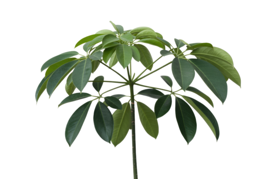 A vibrant Schefflera arboricola plant with lush green leaves, isolated on a transparent background. background removed