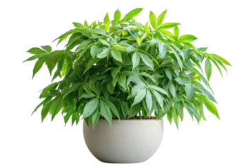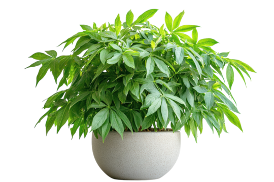 Schefflera arboricola in a pot isolated on transparent background, a popular houseplant