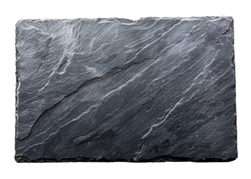 A piece of gray schist rock with white stripes isolated on transparent background, showcasing its metamorphic texture and geological formation