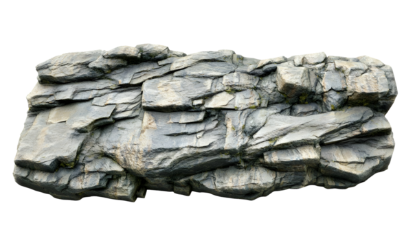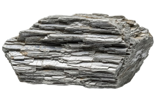 Single piece of silvery layered metamorphic schist rock isolated on transparent background