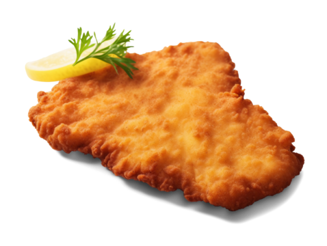 Homemade breaded chicken schnitzel isolated on transparent background