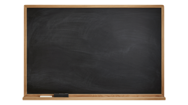 A dark, rectangular blackboard with a light brown wooden frame