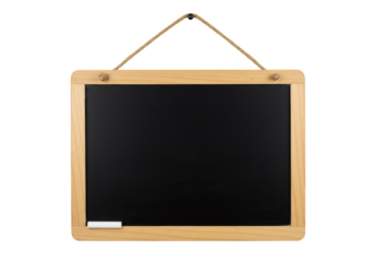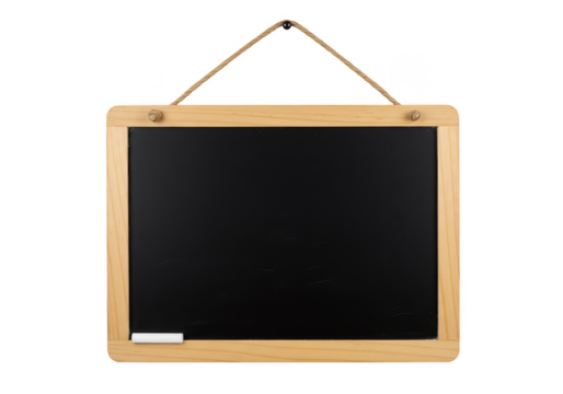 Blank blackboard in wooden frame isolated on transparent background
