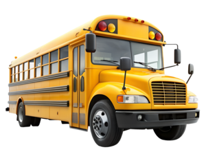 yellow school bus isolated on white background. Transparent PNG file available with high quality.