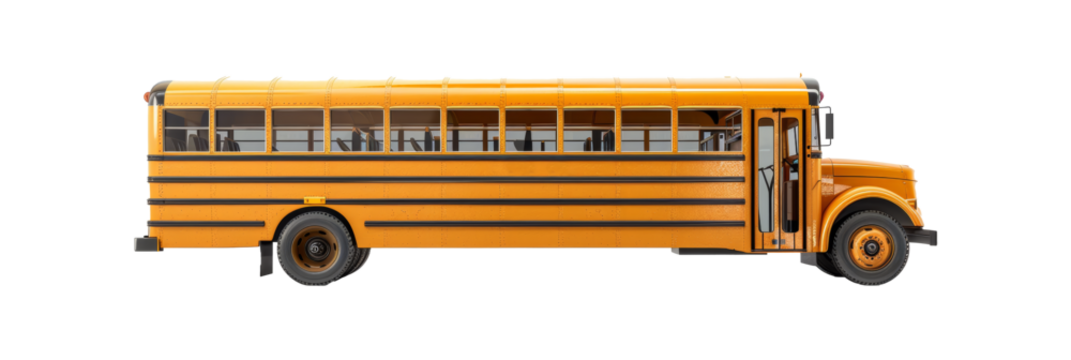 A school bus isolated on a transparent background, highlighting its classic yellow design and significance in transportation. Perfect for traffic-related designs, educational materials, or safety camp