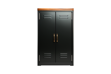 Industrial metal locker cabinet with vintage patina isolated on transparent white background