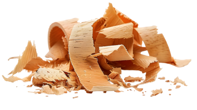 Wooden spiral pencil shavings from sharpener isolated on a transparent background