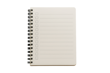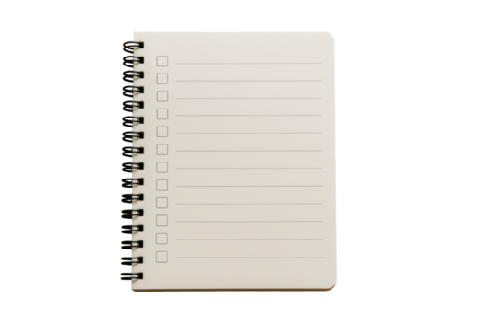 Spiral-bound notebook with checkbox list layout, isolated in closeup on white background, concept of planning and organization. Ai generative