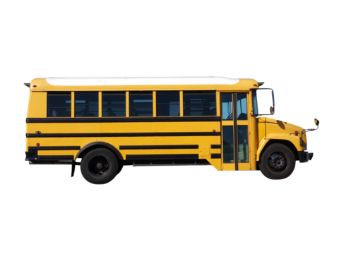 A classic yellow school bus stands ready for its route, isolated on transparent background, symbolizing education and safe transportation