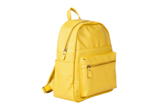 Yellow backpack. Backpack isolated on white background. Space for copy. Png.
