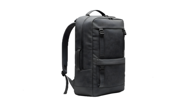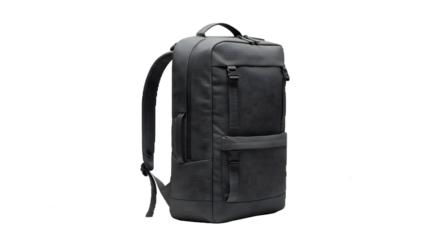 Black backpack isolated on transparent background, ready for school or travel