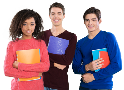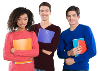 Smiling young student team with books