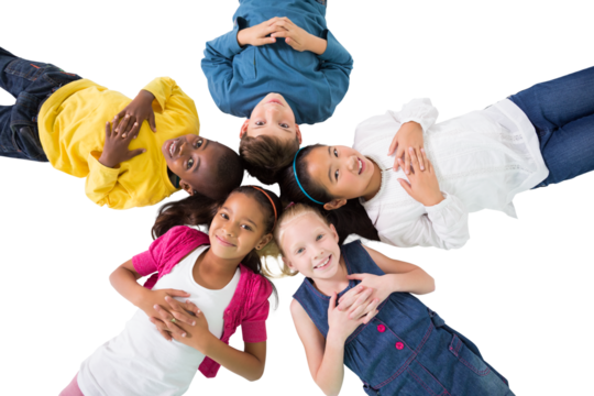 Diverse group of happy schoolchildren transparent background