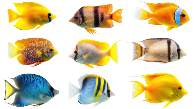 Colorful tropical fish swimming in vibrant marine environment isolated on transparent background