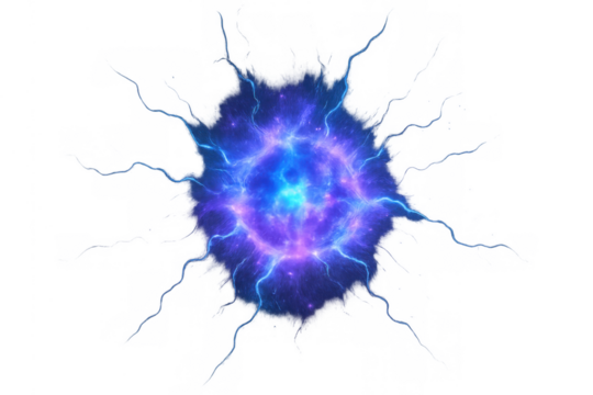Energy portal opening, generating lightning power and abstract blue purple cosmic vortex on transparent background