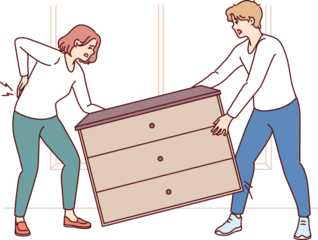 Woman injured back while rearranging furniture in house with husband or moving to new apartment