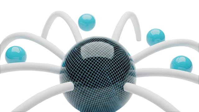 Transparent abstract molecular structure with glassy spheres