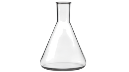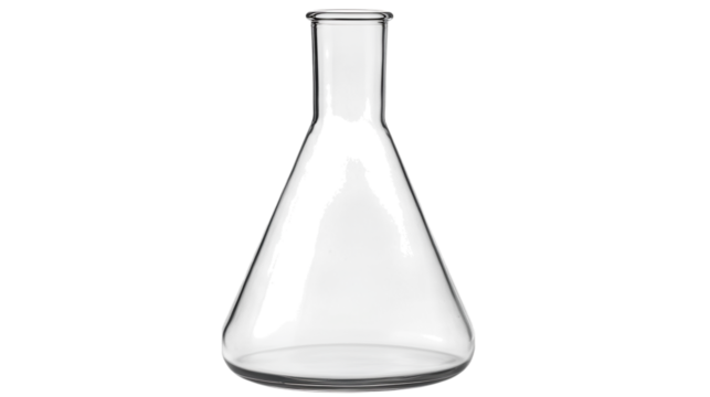 Transparent Erlenmeyer flask with no liquid isolated on PNG