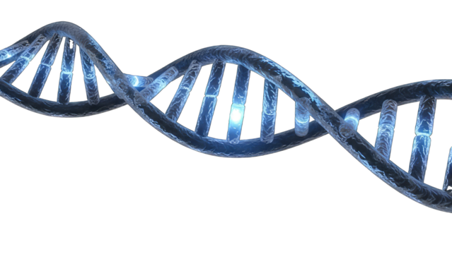 Illuminated double helix structure isolated on transparent background