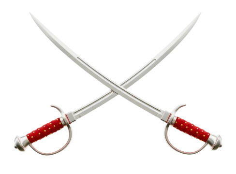 Two crossed swords with red handles isolated on transparent background