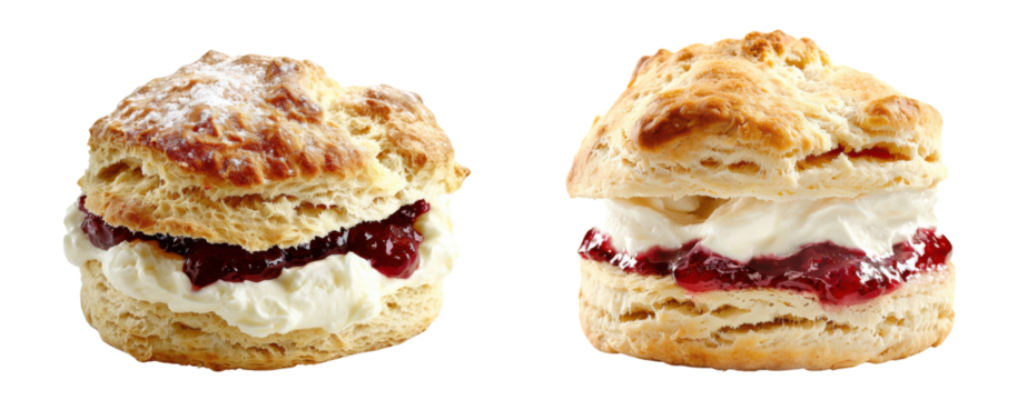 Classic Cream Scones with Jam Filling Isolated on transparent background
