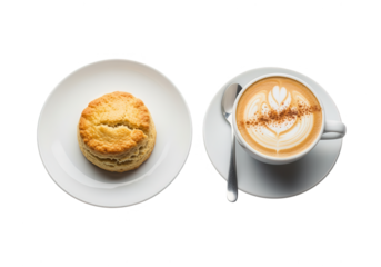 Scone and Latte Art: Breakfast Still Life on White