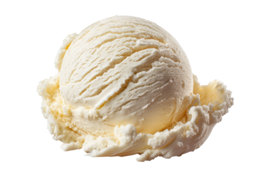 Detailed vanilla ice cream scoop on black background, cut out