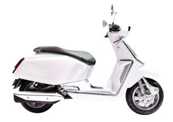 Side view white motorcycle scooter isolated on white background with clipping path