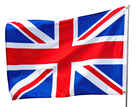 Closeup of a british flag isolated on transparent background, a symbol of the united kingdom