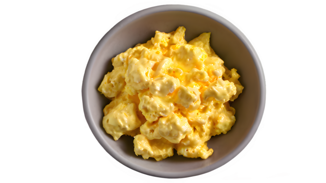 Scrambled egg in bowl isolated on transparent background