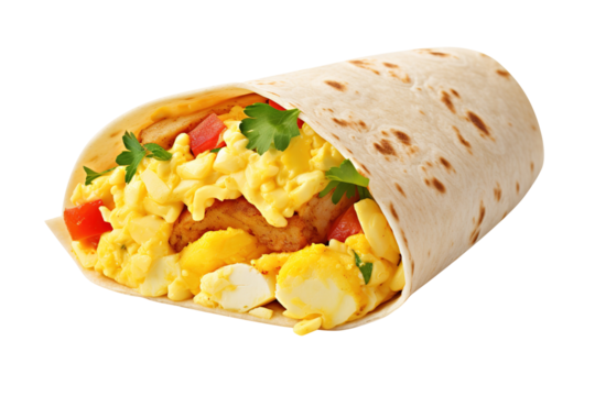 Breakfast Burrito with Scrambled Egg isolated on transparent background Remove png, Clipping Path, pen tool