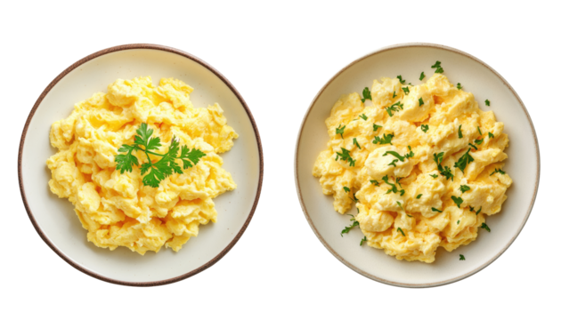 Plate of scrambled eggs isolated on transparent background, PNG file, classic breakfast