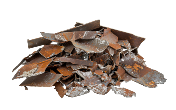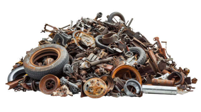 Assorted metal waste pile isolated on transparent background
