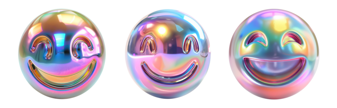 set of 3D iridescent material emoji smiles isolated